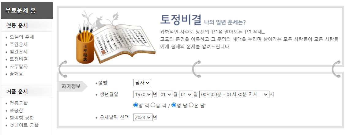 이곳에서는 정통운세, 생활운세, 애정운세와 같은 다양한 운세를 무료로 제공하고 있습니다.