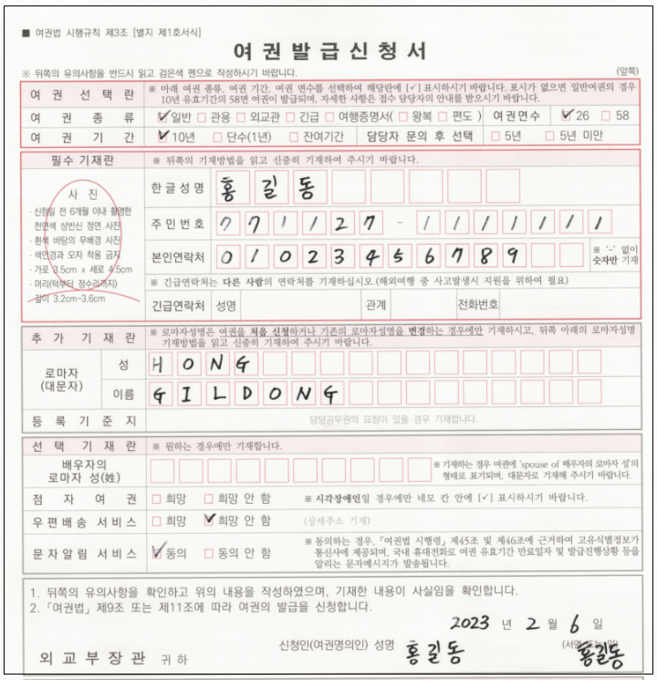 - 여권발급신청서