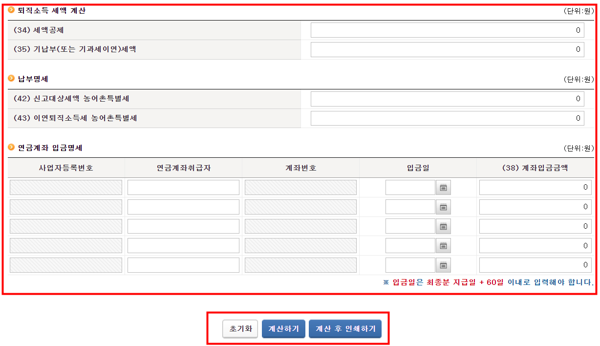 ④ 퇴직소득 세액 계산 기입 후 계산하기