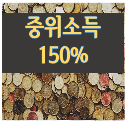 중위소득이란 국민 가구 소득을 가운데 기준으로 정렬했을 때 중앙에 위치하는 값으로, 전체 국민을 100명이라고 가정하고 소득의 크기순으로 나열했을 때 50번째 사람의 소득을 의미합니다.