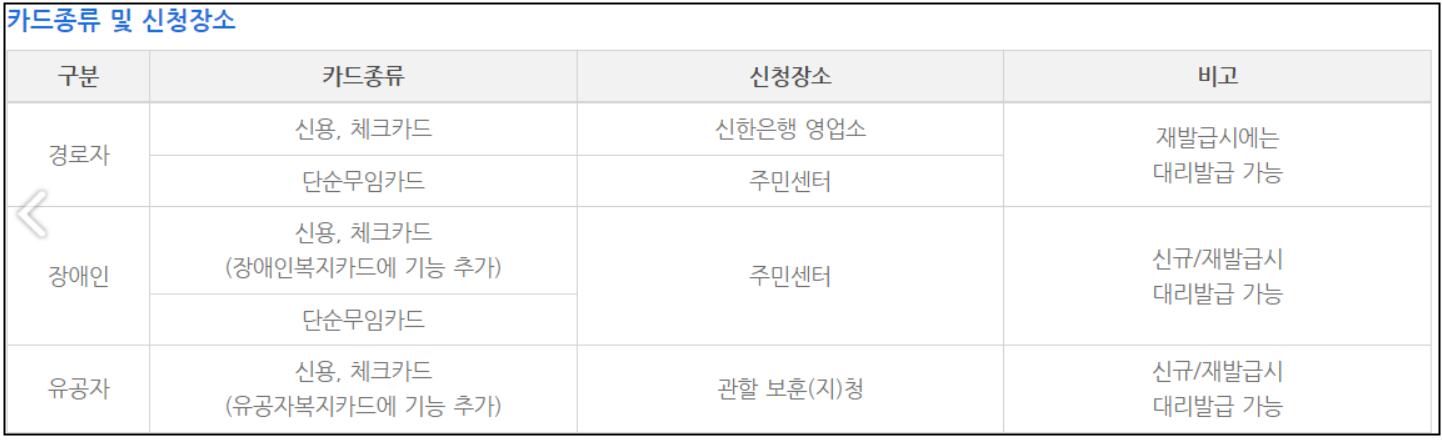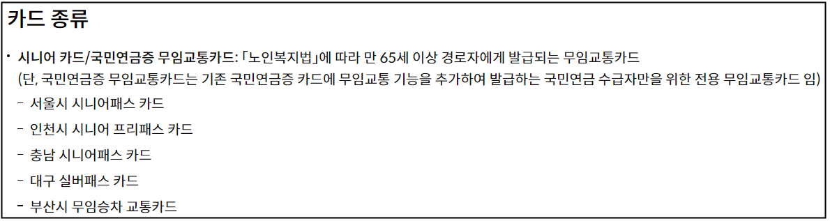 선불식인 단순 무임카드는 주민센터에서 발급하며, 후불식인 교통카드 방식은 은행에서 발급 가능합니다.