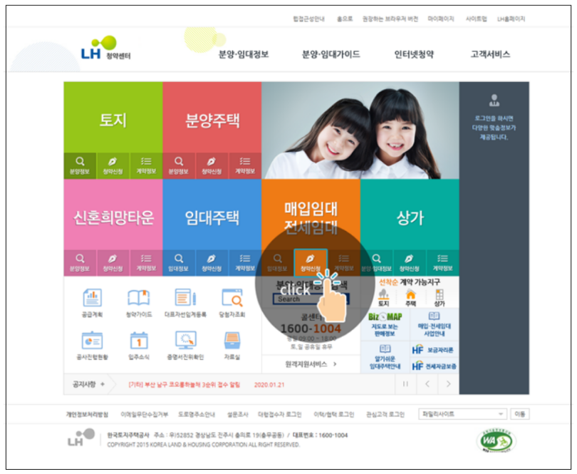 LH 청약센터 웹사이트에서 매입임대/전세임대 메뉴에서 청약신청을 할 수 있습니다. 다만, 청약 신청을 위해서는 공인인증 로그인이 필요하니 미리 준비하는것이 좋습니다.